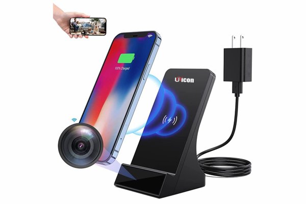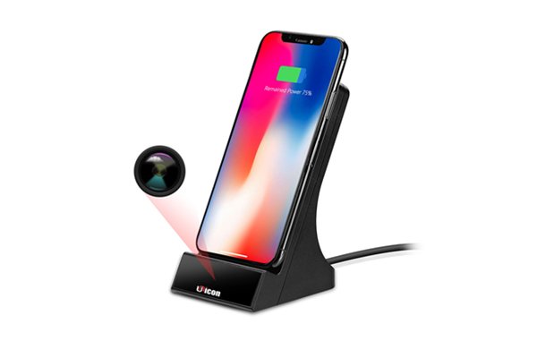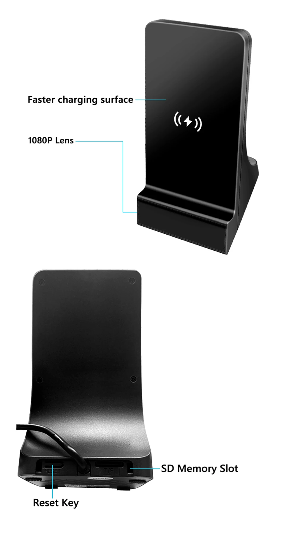 Invisible Lens Support: looks like a wireless phone charger for safety video taking